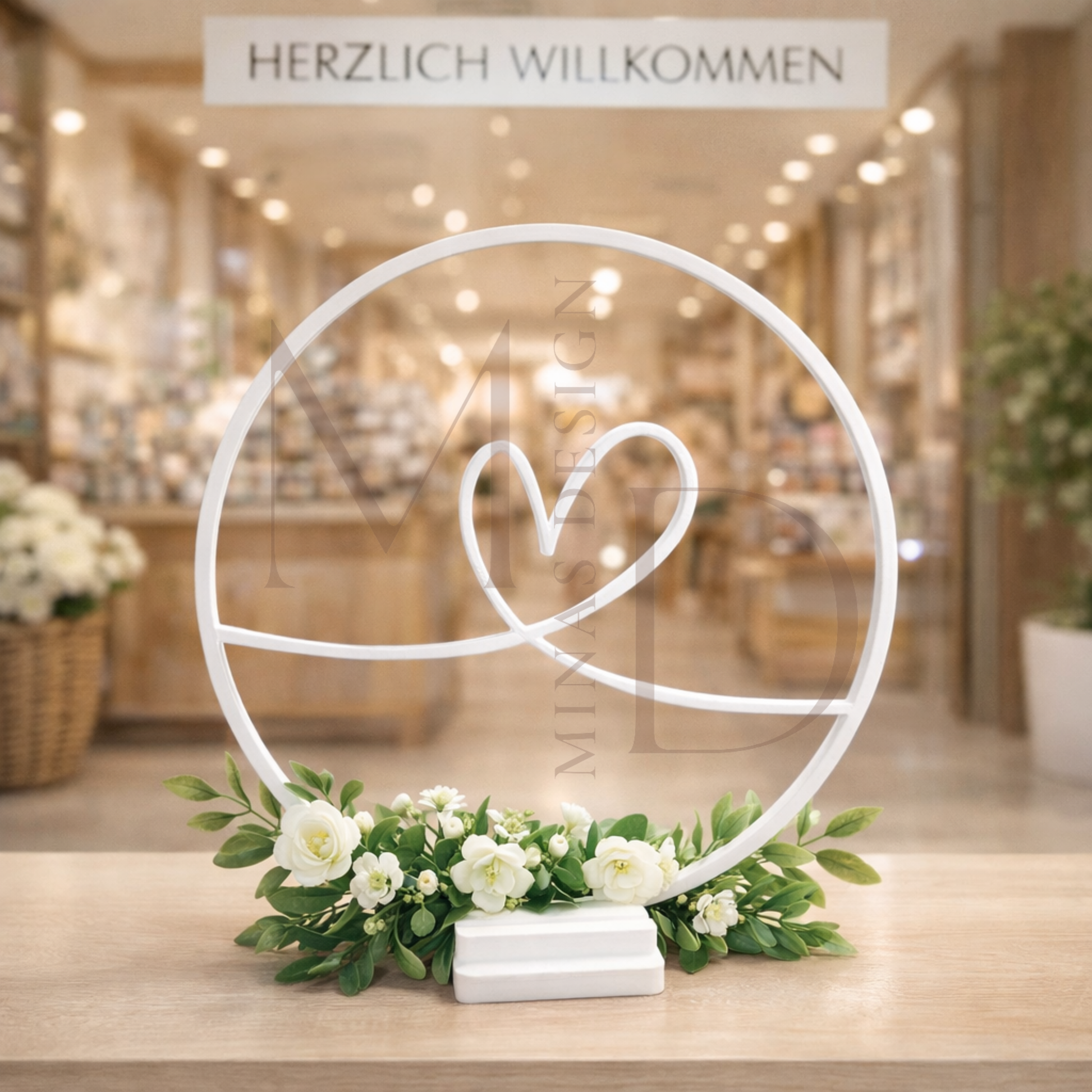 Die abgebildete Dekoration dient ausschließlich als Inspirationsbeispiel und ist nicht im Lieferumfang enthalten. Geliefert wird der DekoRing Herz inklusive Ständer, ohne zusätzliche Dekoelemente.