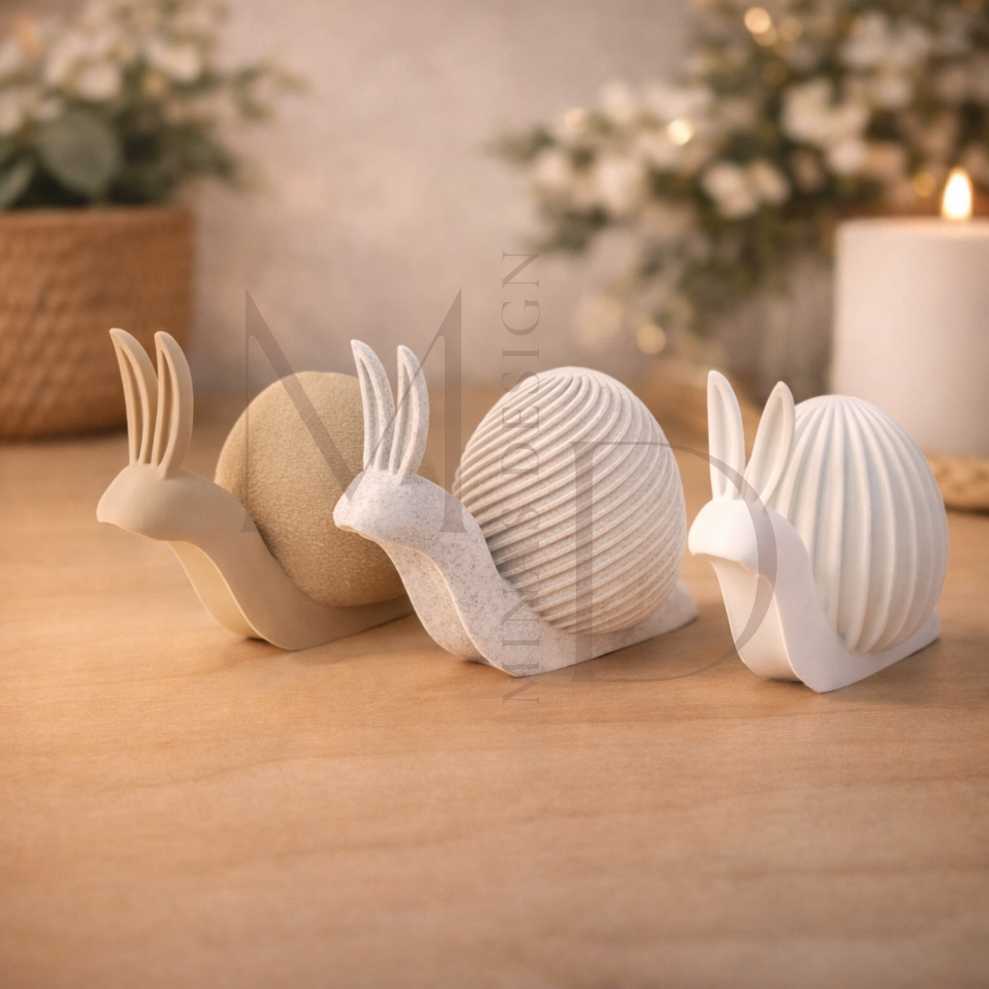 Die Osterhasenschnecken sind auch als harmonisch abgestimmtes Set erhältlich – perfekt für größere Dekoflächen oder ein besonders stimmiges Osterarrangement.