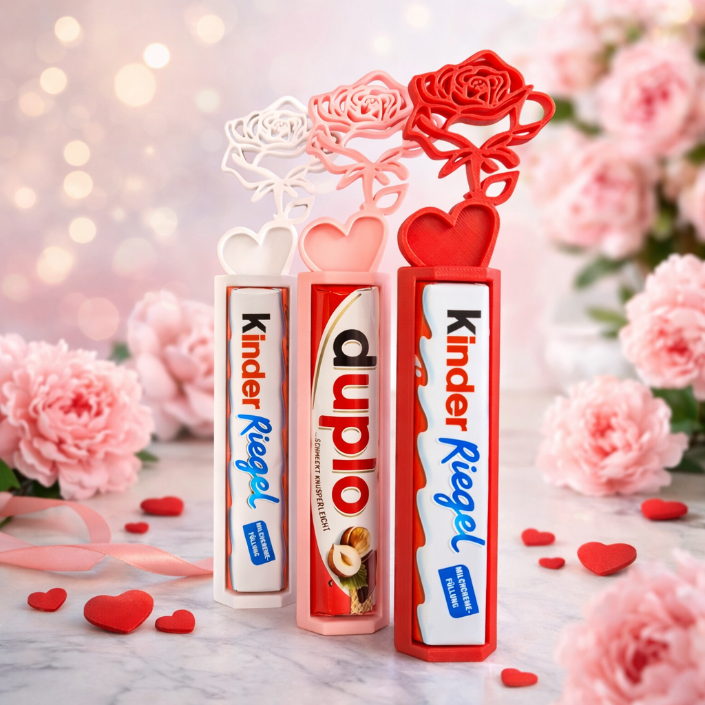 „Rose trifft Schoki“ verbindet eine liebevoll gestaltete 3D-Rose mit einem passgenauen Halter für Duplo oder Kinder Riegel – perfekt als süße Aufmerksamkeit für besondere Menschen.